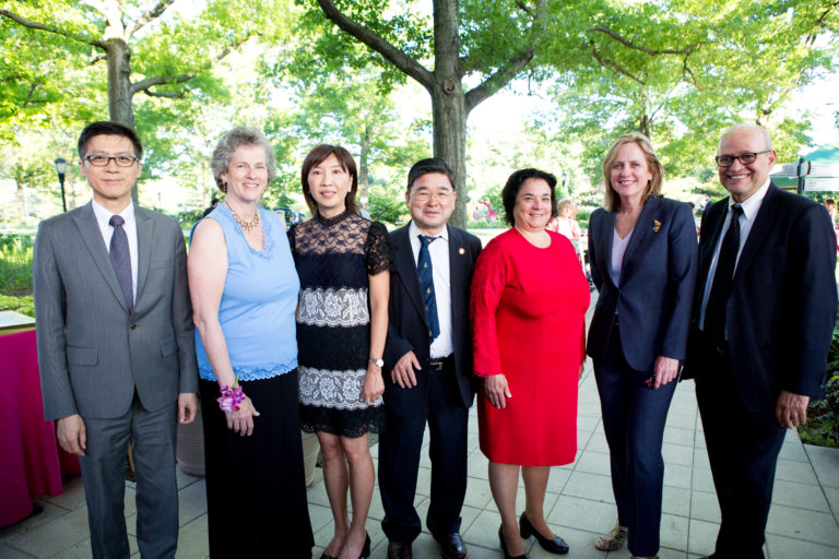 Pictured from left to right are Deputy Director General of TECO-NY Andrew Yang, QBG Executive Director Susan Lacerte, QBG Board Chair Pauline Huang, Councilman Peter Koo, honoree Maria Grasso, Borough President Melinda Katz and DCA Commissioner Tom Finkelpearl. BY JEN…