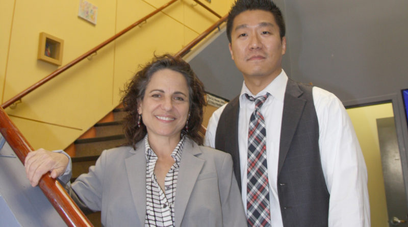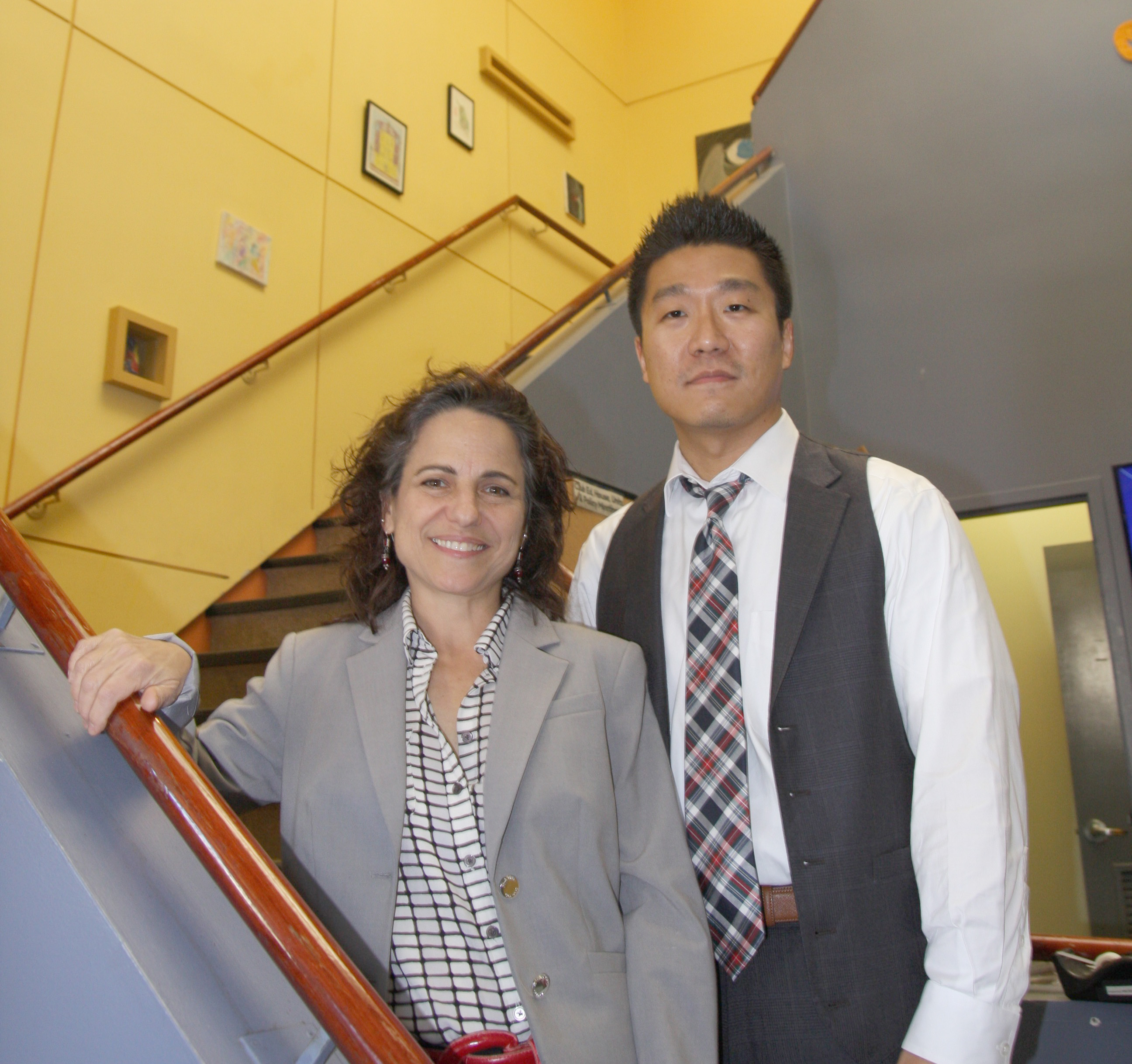 Gil Young Jo and Juliet Douglas share a laugh on the step of Venture House.