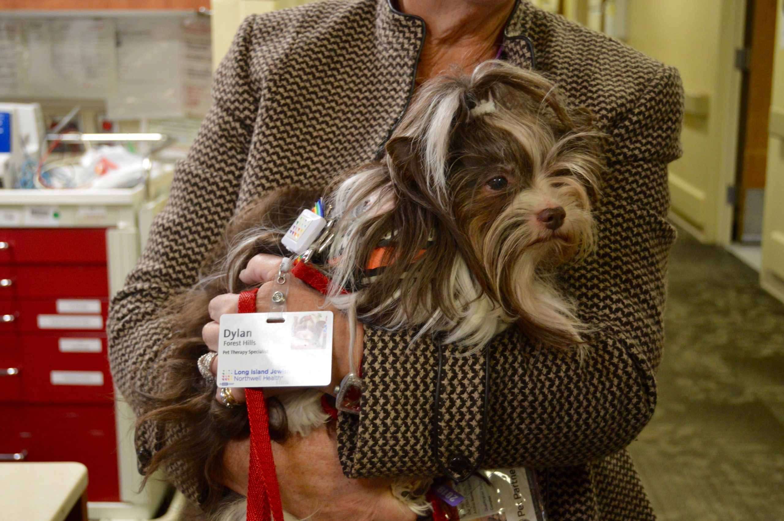 Enter Dylan and Seamus, the faithful pet therapy dogs at LIJ Forest Hills. Once a week, these four-legged volunteers and their owners make the rounds at the hospital visiting patients who request it. Though a structure for the program comes from other hospitals under the Northwell Health umbrella, the idea to begin pet therapy at the Forest Hills location was born from the collaboration of a group of employees who love animals.